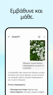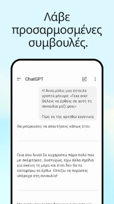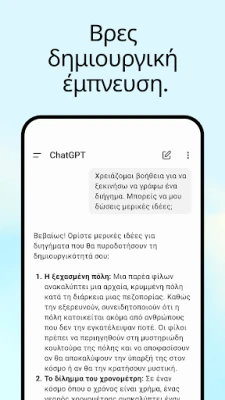 Με το ChatGPT, η επικοινωνία γίνεται αβίαστη και διαισθητική. Ενεργοποιήστε τη φωνητική λειτουργία πατώντας το ειδικό εικονίδιο για να μιλήσετε άμεσα, είτε αναζητάτε μια συναρπαστική ιστορία για τα παιδιά σας, είτε χρειάζεστε μια άμεση απάντηση σε ένα ερώτημα που σας απασχολεί. Επιπλέον, η δυνατότητα αποστολής φωτογραφιών ανοίγει νέους ορίζοντες: μετατρέψτε μια χειρόγραφη συνταγή σε ψηφιακό κείμενο ή λάβετε πληροφορίες για ένα ιστορικό μνημείο απλά τραβώντας μια φωτογραφία. Η δημιουργική σας έμπνευση θα βρει έναν ισχυρό σύμμαχο στο ChatGPT, παρέχοντας πρωτότυπες ιδέες για δώρα γενεθλίων ή βοηθώντας στη δημιουργία μιας πραγματικά εξατομικευμένης ευχετήριας κάρτας.