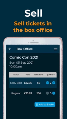 Επεκτείνετε τις δυνατότητες πώλησης εισιτηρίων οπουδήποτε και ανά πάσα στιγμή με την καινοτόμο λειτουργία Box Office. Αυτή η ευέλικτη προσθήκη σάς επιτρέπει να προσφέρετε στους πελάτες σας την επιλογή πληρωμής με μετρητά ή άμεσα μέσω mobile banking, καλύπτοντας κάθε ανάγκη. Η διαδικασία είναι εξαιρετικά απλή: απλώς επιλέγετε την επιλογή "Box Office" για την εκδήλωσή σας και αρχίζετε να προσθέτετε εισιτήρια στο καλάθι. Προσφέρετε μια απρόσκοπτη εμπειρία αγοράς, ενισχύοντας την προσβασιμότητα και την ικανοποίηση των συμμετεχόντων σας.