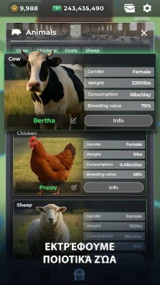 Φαντάσου να μεταμορφώνεις μια μικρή έκταση γης σε μια ακμάζουσα γεωργική αυτοκρατορία, όπου κάθε απόφαση μετράει και κάθε στρατηγική κίνηση οδηγεί στην επιτυχία. Το Farm Manager της Trophy Games σε προσκαλεί να αναλάβεις τα ηνία και να βιώσεις την απόλυτη προσομοίωση διαχείρισης φάρμας. Από την επιλογή των κατάλληλων σπόρων μέχρι την εκτροφή βραβευμένων ζώων, αυτό το παιχνίδι σου δίνει την ευκαιρία να χτίσεις το όραμά σου: είτε πρόκειται για μια τοπική, βιώσιμη επιχείρηση είτε για ένα παγκόσμιο δίκτυο παραγωγής που εκτείνεται σε κάθε γωνιά του πλανήτη. Η πρόκληση είναι μπροστά σου, καθώς ανταγωνίζεσαι με φίλους και άλλους επίδοξους αγρότες για την κορυφή των παγκόσμιων πινάκων κατάταξης.