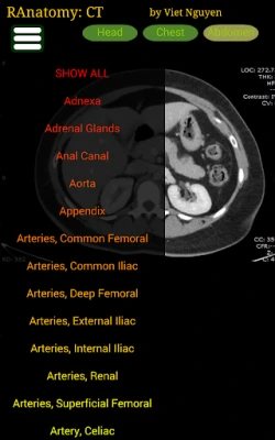 Το RAnatomy: CT προσφέρει έναν δυναμικό και διαδραστικό τρόπο για την προβολή και κατανόηση της εγκάρσιας ανθρώπινης ανατομίας μέσω αξονικής τομογραφίας (CT). Ένα χρήσιμο εργαλείο για εκμάθηση και αναφορά στην ανατομία CT.