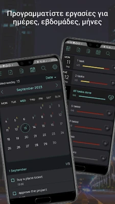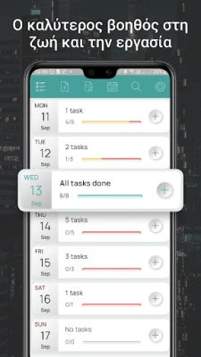 Θέστε στόχους για την ημέρα ή την εβδομάδα και δείτε τα αποτελέσματα να έρχονται γρήγορα. Το My Tasks λειτουργεί ως ο προσωπικός σας καθοδηγητής, βοηθώντας σας να βάλετε τάξη στο καθημερινό χάος και να εκμεταλλευτείτε στο έπακρο κάθε στιγμή. Αποχαιρετήστε το άγχος των χαμένων προθεσμιών και των ξεχασμένων υποχρεώσεων, ενώ παράλληλα απελευθερώνετε πολύτιμο χρόνο. Οι χρήστες αναφέρουν έως και τριπλάσια ταχύτητα στην ολοκλήρωση εργασιών και αύξηση της παραγωγικότητας έως και 60%, μετατρέποντας τις φιλοδοξίες σας σε πραγματικότητα.